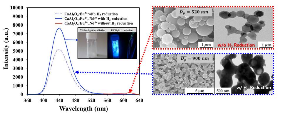 [106-2019-3] Luo, X., Ahn, J. Y., Kim, S. H.*, "Aerosol Synthesis and Luminescent Properties of CaAl2O4:Eu2+, Nd3+ Down-Conversion Phosphor Particles for Enhanced Light Harvesting of Dye-Sensitized Solar Cells", Solar Energy, January 15, 2019, Vol. 178, pp. 173-180. (IF 4.608)