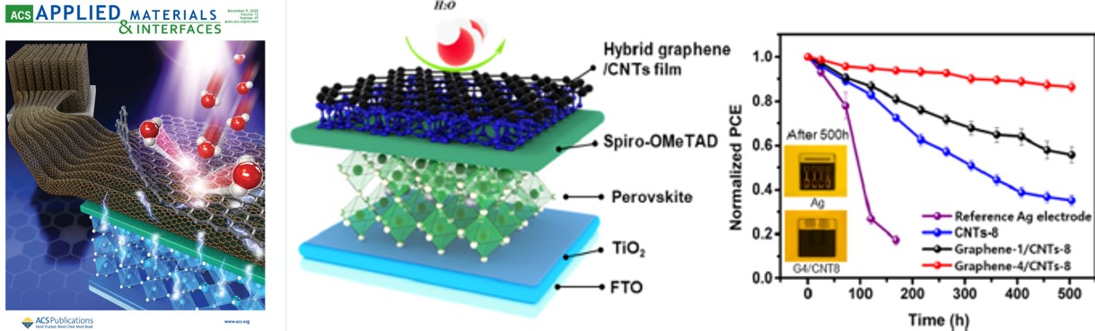 [118-2020-5] Tian, M., Woo, C. Y., Choi, J. W., Seo, J. Y., Kim, J. M., Kim, S. H.*, Song, M. K.*, Lee, H. W.*, "Printable Free-Standing Hybrid Graphene/Dry-Spun Carbon Nanotube Films as Multifunctional Electrodes for Highly Stable Perovskite Solar Cells", ACS Applied Materials & Interfaces, November 10, 2020, Vol.12, pp. 54806-54814. (IF 9.229, JCR Top 14.2%) [Featured on Cover Gallery]