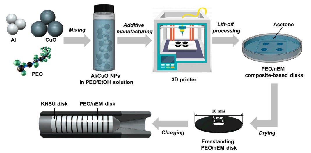 [127-2023-1] Kim, H. S., Kim, S. H.*, "Additive Manufacturing and Combustion Characteristics of PEO/Al/CuO-Based Energetic Nanocomposites for Enhancing the Propulsion of Small Projectiles", Nanomaterials, March 15, 2023, Vol.13, 1052. (IF 5.719)